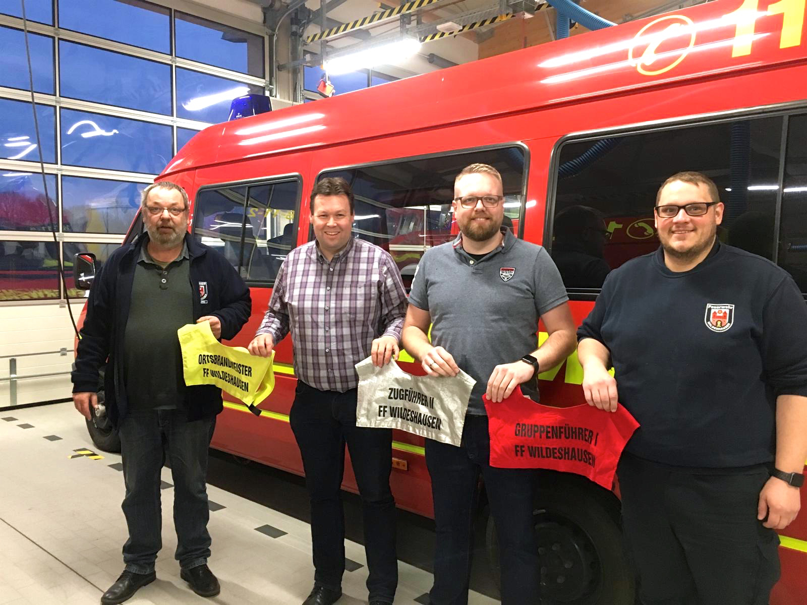 Symbolisch wurden die Funktionsüberwürfe, kurz: „Koller“ genannt, weitergegeben. Daniel Müller übernimmt das Amt des Gruppenführers der 1. Gruppe mit dem roten Koller von Jens Hogeback, dieser wiederum übernimmt das Amt (mit dem silbernen Koller) des Zugführer des 2. Zuges, das wiederum von Lutz Ertelt übergeben wurde. Lutz übernimmt als „letzter“ in der Reihe von Hermann Cordes das gelbe Koller, dass die Führung und den Ortsbrandmeister im Einsatz und auf der Einsatzjacke kennzeichnen wird. Damit beginnt die neue Amtszeit der Führung der Ortsfeuerwehr Wildeshausen zum 01. März 2019. Für alle Funktionsinhaber stellen die neuen Funktionen sicher auch eine neue Herausforderung dar, die alle mit vollem Tatendrang angehen werden. Die ein oder andere Idee haben unsere neuen Koller-Träger sicher schon in Ihrem Kopf und brennen drauf, diese in ihrer neuen Amtszeit in die Tat umzusetzen. Erste Anzeichen dafür, so munkelt man innerhalb unserer Feuerwehr, konnten die Kameraden bereits wahrnehmen.