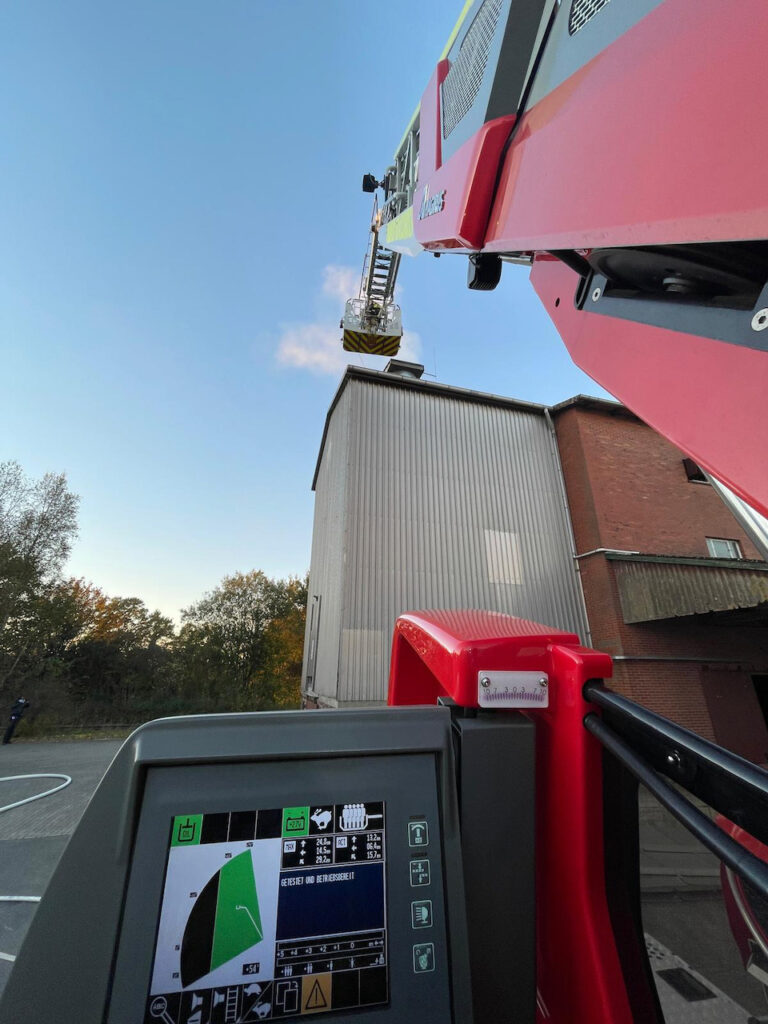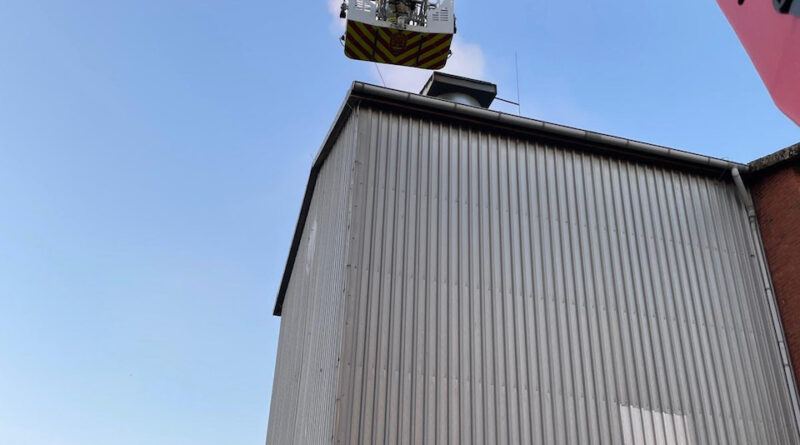 (Eng) Der nächste Einsatz führte uns in die Nachbargemeinde Dötlingen, genauer nach Brettorf. Dort brannte in der Raiffeisenstraße ein Maistrockner im Gebäude. Über die DLK wurden die Brandbekämpfungsmaßnahmen von uns von oben unterstützt und weiterhin auch Atemschutzgeräteträger gestellt.